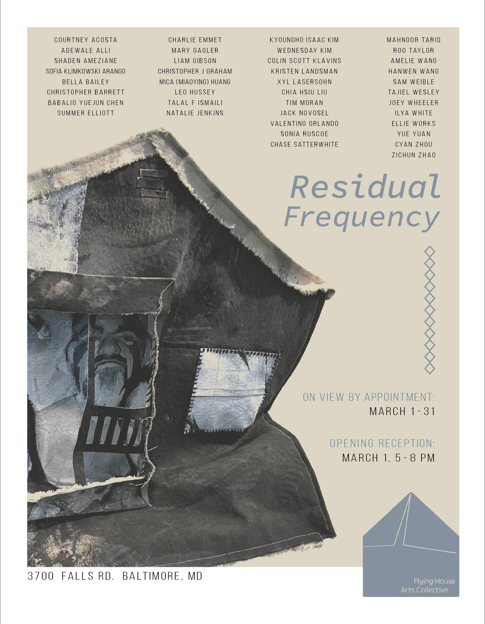 February 10 - March 7, 2025Artists: Patrick Bell, Sinder Block, Dre Burciaga, Yasheeka Dhabre, Kristofer Heng, Aulona Hoti, Erica Kim, Kristen Landsman, Xyl Lasersohn, Huaqi Liu, Grant Marshall, Lily Raines, Tey Saunders, Zaria Thomas, Clipber Tran, Joseph Turner, Amelie Wang, Hanwen Wang, YooRaRa, Lo YoungeCurated by Flying House Arts Collective